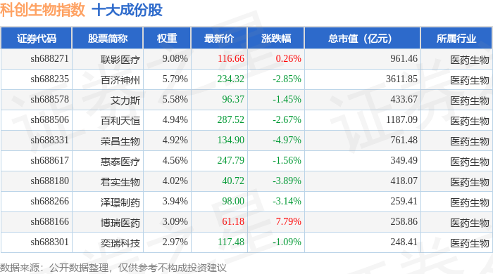 科创生物(000683)指数十大成份股详情如下: