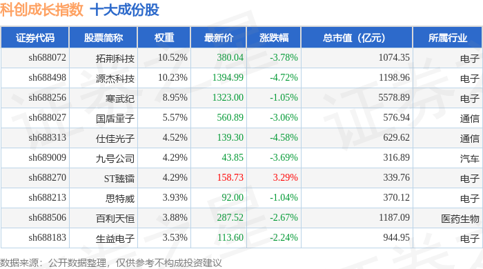 科创成长(000690)指数十大成份股详情如下:
