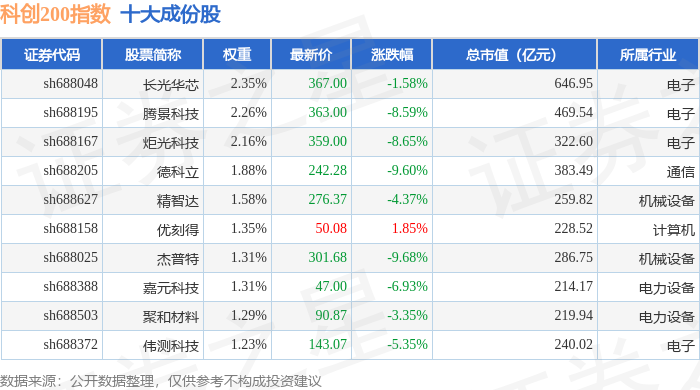 证券之星消息,4月23日,科创200(000699)指数报收于1606.35点,跌2.93%,成交901.08亿元,换手率3.17%。当日该指数成份股中,上涨的有30家,华特气体以6.84%的涨幅领涨,下跌的有168家,杰普特以9.68%的跌幅领跌。