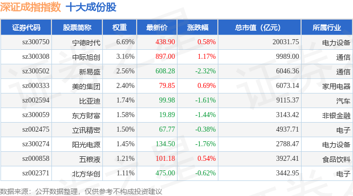深证成指(399001)指数十大成份股详情如下: