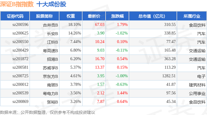 深证B指(399108)指数十大成份股详情如下: