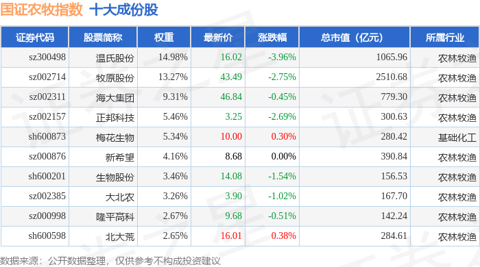 资金流向方面,国证农牧(399435)指数成份股当日主力资金净流出合计7.61亿元,游资资金净流入合计1.26亿元,散户资金净流入合计6.35亿元。成份股资金流向详情见下表: