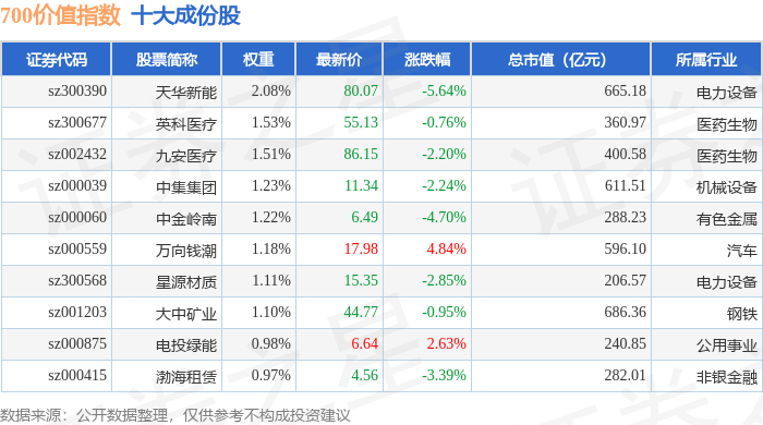 700价值(399629)指数十大成份股详情如下: