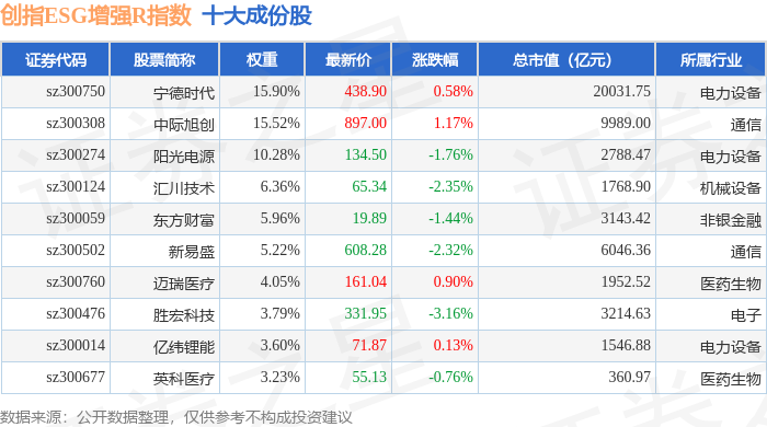 创指ESG增强R(470034)指数十大成份股详情如下: