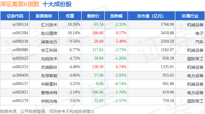 深证高装R(470037)指数十大成份股详情如下: