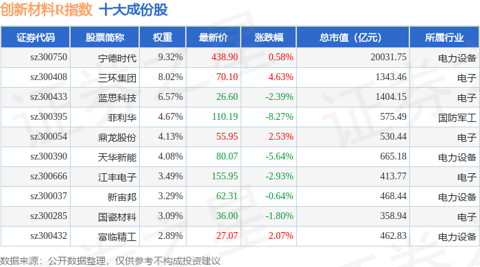 创新材料R(470039)指数十大成份股详情如下: