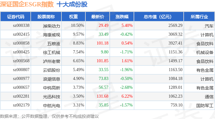 深证国企ESGR(470055)指数十大成份股详情如下: