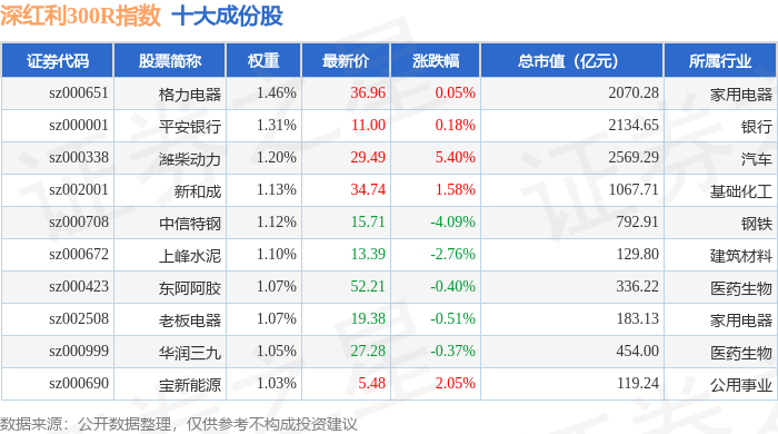 深红利300R(470062)指数十大成份股详情如下: