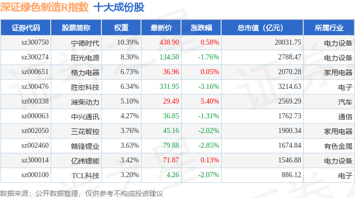 深证绿色制造R(470069)指数十大成份股详情如下: