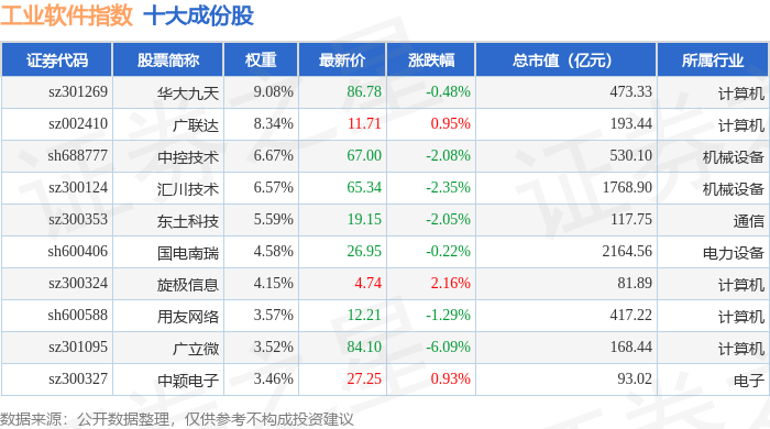 工业软件(980034)指数十大成份股详情如下: