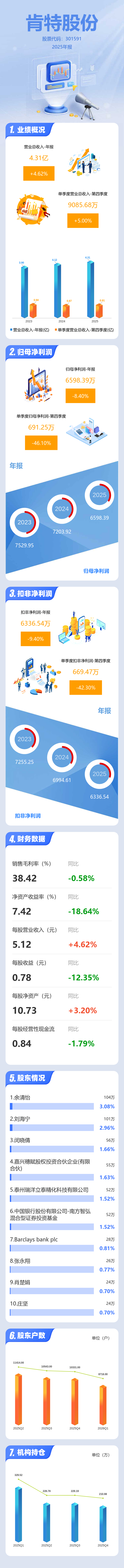 证券之星消息,肯特股份2025年年报显示,当年度公司主营收入4.31亿元,同比上升4.63%;归母净利润6598.39万元,同比下降8.41%;扣非净利润6336.54万元,同比下降9.41%;其中2025年第四季度,公司单季度主营收入9085.68万元,同比上升5.0%;单季度归母净利润691.25万元,同比下降46.1%;单季度扣非净利润669.47万元,同比下降42.31%;负债率9.07%,投资收益212.05万元,财务费用-230.46万元,毛利率38.42%。