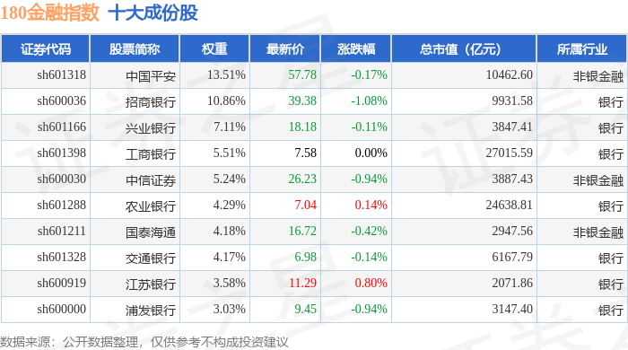 180金融(000018)指数十大成份股详情如下: