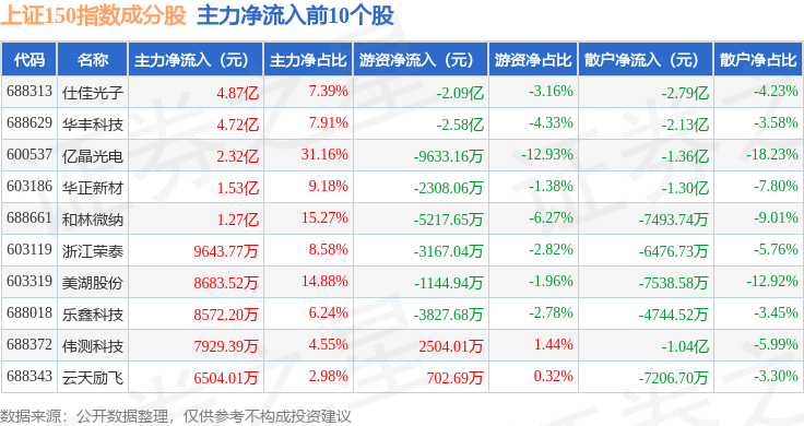 资金流向方面,上证150(000133)指数成份股当日主力资金净流出合计1.39亿元,游资资金净流入合计3136.15万元,散户资金净流入合计1.07亿元。成份股资金流向详情见下表: