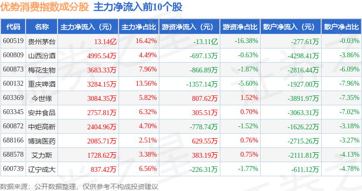 资金流向方面,优势消费(000147)指数成份股当日主力资金净流入合计9.39亿元,游资资金净流出合计12.01亿元,散户资金净流入合计2.62亿元。成份股资金流向详情见下表: