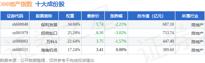证券之星消息,4月24日,300地产(000952)指数报收于2093.72点,跌1.92%,成交15.97亿元,换手率0.8%。当日该指数成份股中,下跌的有3家,招商蛇口以3.02%的跌幅领跌。