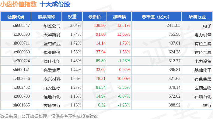 小盘价值(399377)指数十大成份股详情如下: