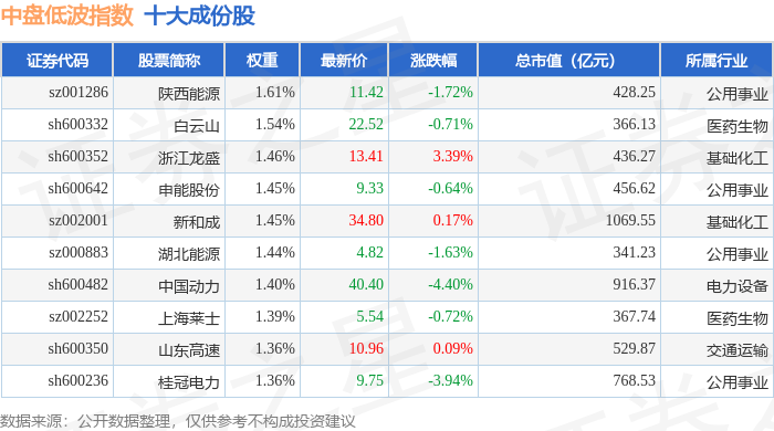 中盘低波(399406)指数十大成份股详情如下: