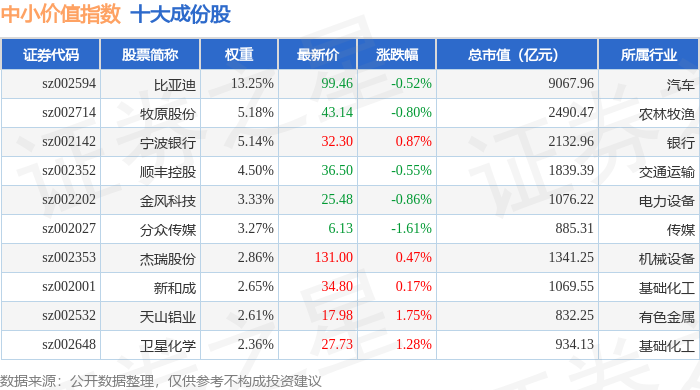 中小价值(399604)指数十大成份股详情如下: