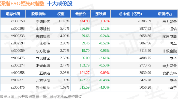 深指ESG领先R(470029)指数十大成份股详情如下: