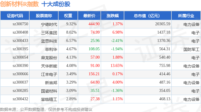 创新材料R(470039)指数十大成份股详情如下: