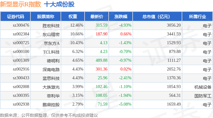 证券之星消息,4月24日,新型显示R(470048)指数报收于2803.92点,跌1.68%,成交940.58亿元,换手率2.48%。当日该指数成份股中,上涨的有13家,富满微以4.02%的涨幅领涨,下跌的有36家,利亚德以12.24%的跌幅领跌。