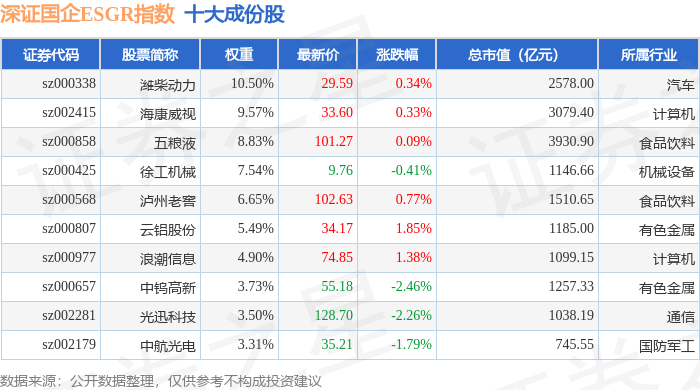 深证国企ESGR(470055)指数十大成份股详情如下: