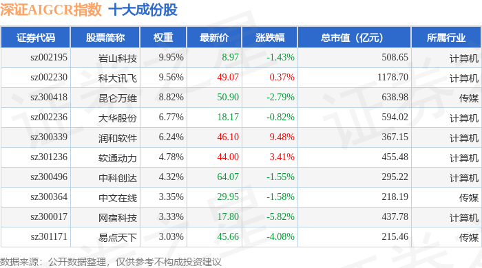 深证AIGCR(470075)指数十大成份股详情如下: