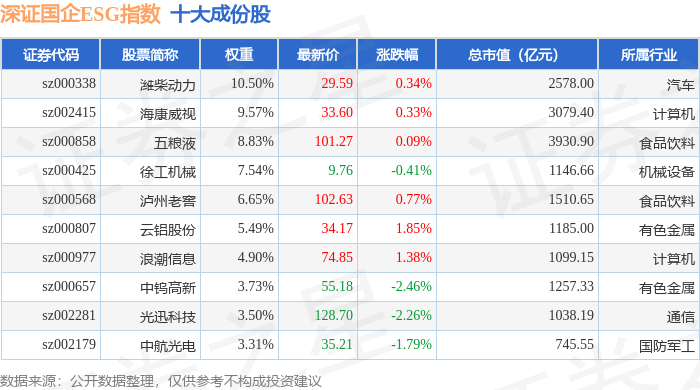 深证国企ESG(970055)指数十大成份股详情如下: