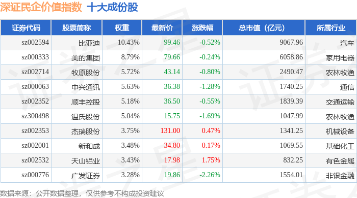 证券之星消息,4月24日,深证民企价值(970072)指数报收于3870.17点,涨0.23%,成交537.38亿元,换手率1.56%。当日该指数成份股中,上涨的有19家,天华新能以13.65%的涨幅领涨,下跌的有30家,滨江集团以9.09%的跌幅领跌。
