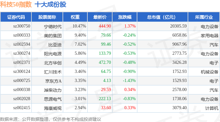 科技50(970080)指数十大成份股详情如下: