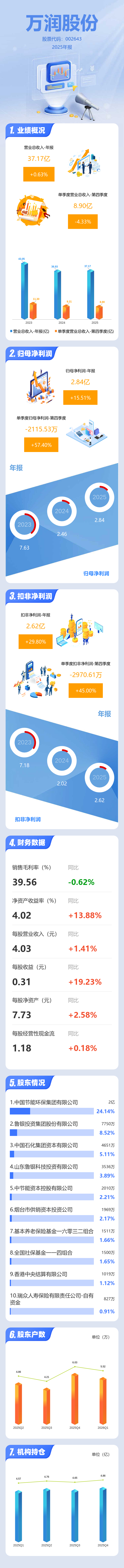 证券之星消息,万润股份2025年年报显示,当年度公司主营收入37.17亿元,同比上升0.63%;归母净利润2.84亿元,同比上升15.51%;扣非净利润2.62亿元,同比上升29.81%;其中2025年第四季度,公司单季度主营收入8.9亿元,同比下降4.34%;单季度归母净利润-2115.53万元,同比上升57.41%;单季度扣非净利润-2970.61万元,同比上升45.01%;负债率26.03%,投资收益-466.56万元,财务费用777.74万元,毛利率39.56%。