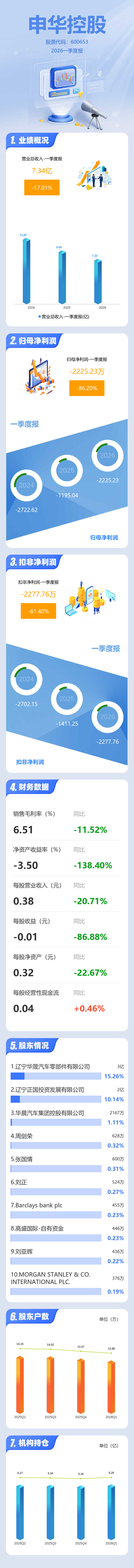 证券之星消息,申华控股2026年一季报显示,一季度公司主营收入7.34亿元,同比下降17.02%;归母净利润-2225.23万元,同比下降86.21%;扣非净利润-2277.76万元,同比下降61.4%;负债率73.05%,投资收益-335.03万元,财务费用1465.41万元,毛利率6.51%。