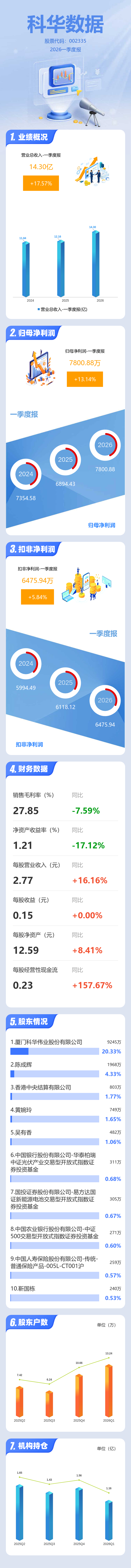 证券之星消息,科华数据2026年一季报显示,一季度公司主营收入14.3亿元,同比上升17.57%;归母净利润7800.88万元,同比上升13.15%;扣非净利润6475.94万元,同比上升5.85%;负债率51.71%,投资收益281.41万元,财务费用956.67万元,毛利率27.85%。