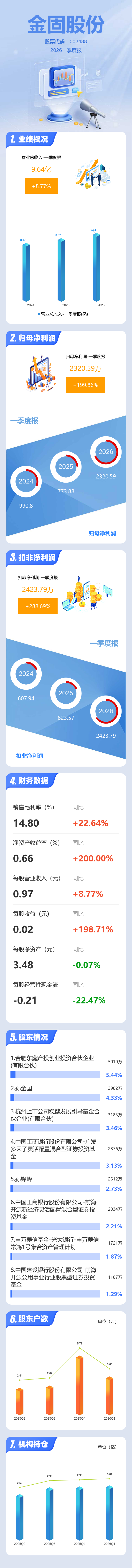 证券之星消息,金固股份2026年一季报显示,一季度公司主营收入9.64亿元,同比上升8.78%;归母净利润2320.59万元,同比上升199.86%;扣非净利润2423.79万元,同比上升288.7%;负债率56.91%,投资收益82.13万元,财务费用2810.32万元,毛利率14.8%。