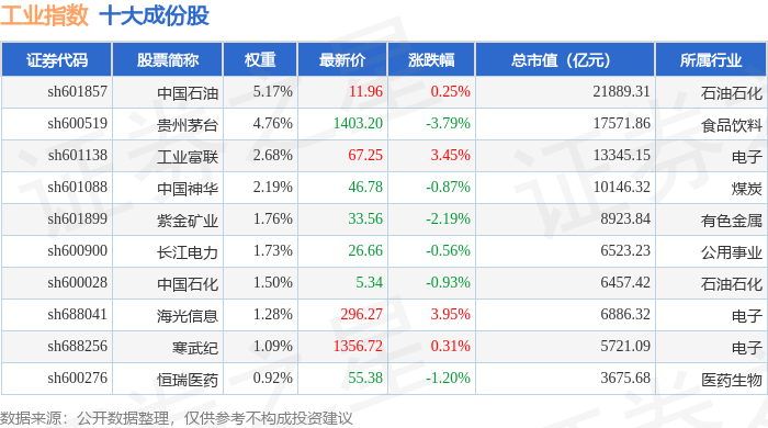 工业指数(000004)十大成份股详情如下: