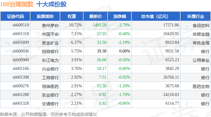 180治理(000021)指数十大成份股详情如下: