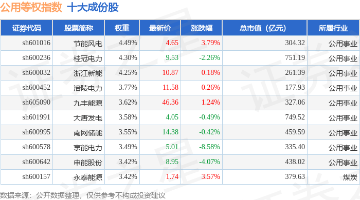 公用等权(000079)指数十大成份股详情如下: