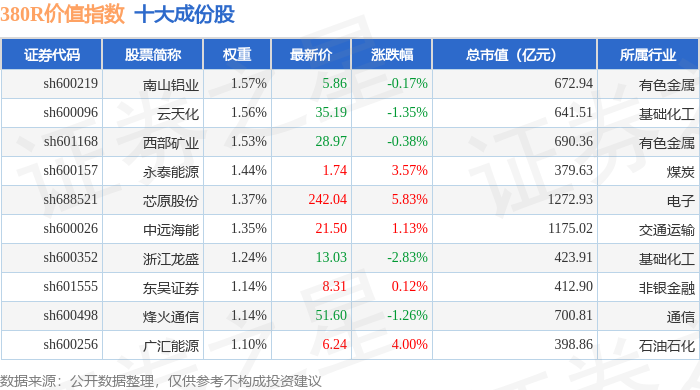 证券之星消息,4月27日,380R价值(000120)指数报收于10543.32点,涨0.18%,成交2075.75亿元,换手率1.77%。当日该指数成份股中,上涨的有131家,芯源微以17.81%的涨幅领涨,下跌的有149家,昆药集团以10.04%的跌幅领跌。