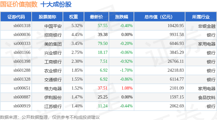 国证价值(399371)指数十大成份股详情如下: