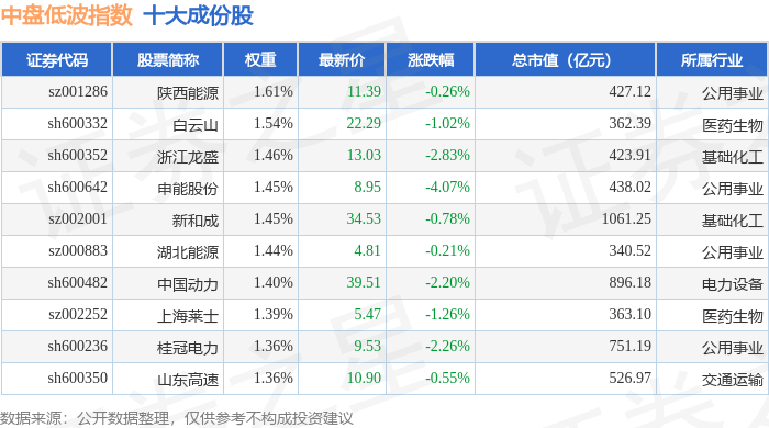 证券之星消息,4月27日,中盘低波(399406)指数报收于13725.98点,跌0.68%,成交416.36亿元,换手率0.82%。当日该指数成份股中,上涨的有29家,格林美以5.81%的涨幅领涨,下跌的有69家,四川路桥以8.8%的跌幅领跌。