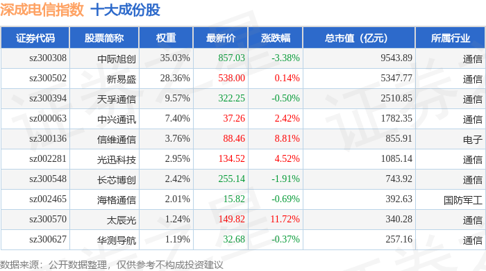 深成电信(399688)指数十大成份股详情如下: