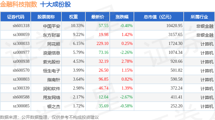 金融科技(399699)指数十大成份股详情如下: