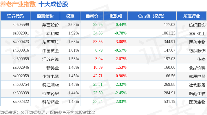 证券之星消息,4月27日,养老产业(399812)指数报收于5871.85点,跌0.35%,成交336.06亿元,换手率0.9%。当日该指数成份股中,上涨的有33家,东方明珠以10.03%的涨幅领涨,下跌的有45家,新宝股份以9.97%的跌幅领跌。