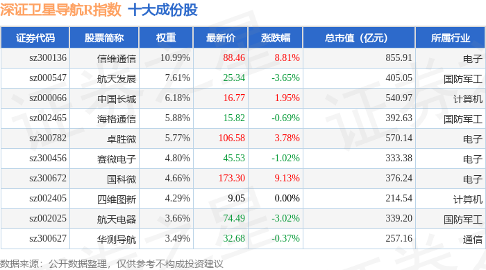 深证卫星导航R(470050)指数十大成份股详情如下:
