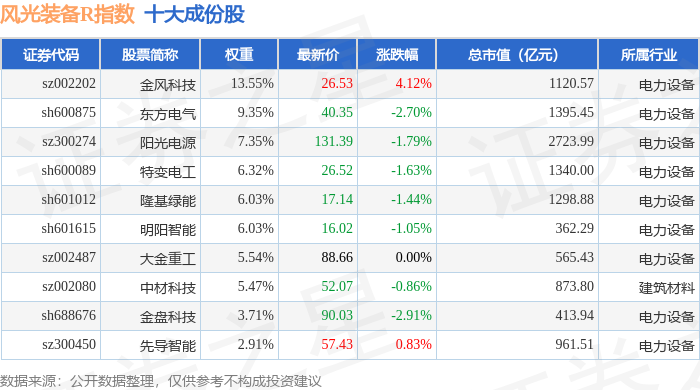 风光装备R(480026)指数十大成份股详情如下: