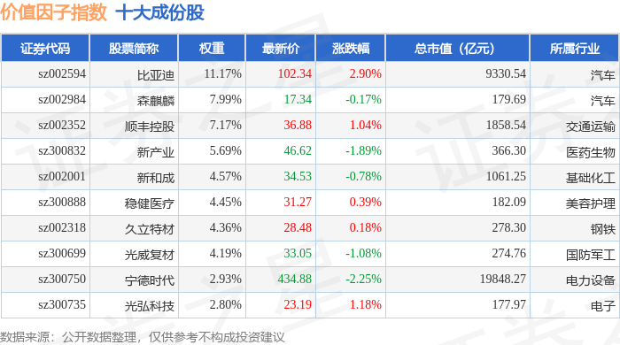 证券之星消息,4月27日,价值因子(980056)指数报收于2602.96点,涨0.15%,成交521.62亿元,换手率0.89%。当日该指数成份股中,上涨的有24家,鹏鼎控股以7.81%的涨幅领涨,下跌的有26家,中宠股份以5.96%的跌幅领跌。