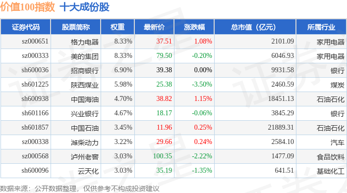 价值100(980081)指数十大成份股详情如下: