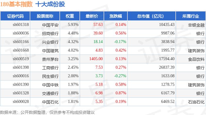 180基本(000053)指数十大成份股详情如下:
