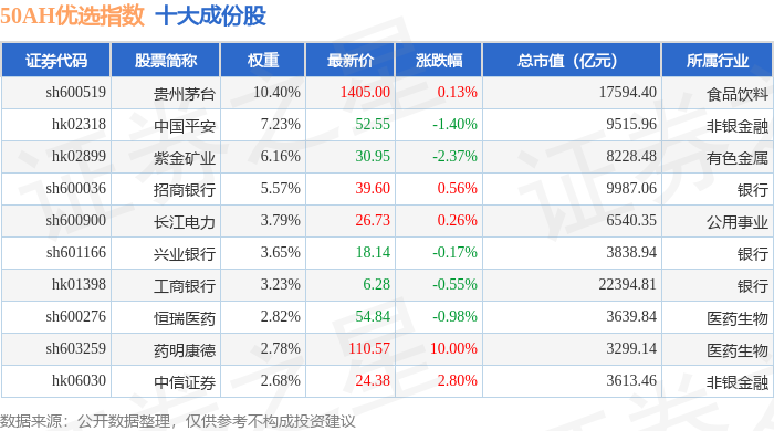 50AH优选(000170)指数十大成份股详情如下: