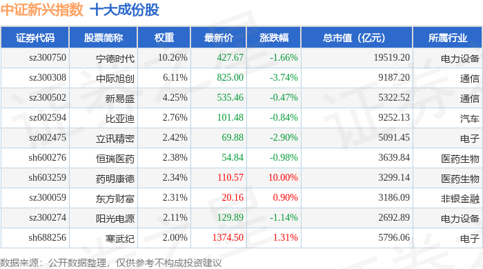 证券之星消息,4月28日,中证新兴(000964)指数报收于12055.57点,跌1.14%,成交3994.89亿元,换手率1.45%。当日该指数成份股中,上涨的有28家,药明康德以10.0%的涨幅领涨,下跌的有72家,盛美上海以11.74%的跌幅领跌。
